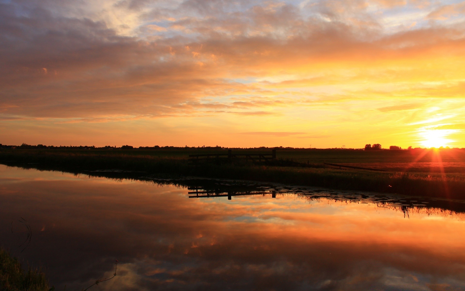 Puesta de sol en el agua oscura