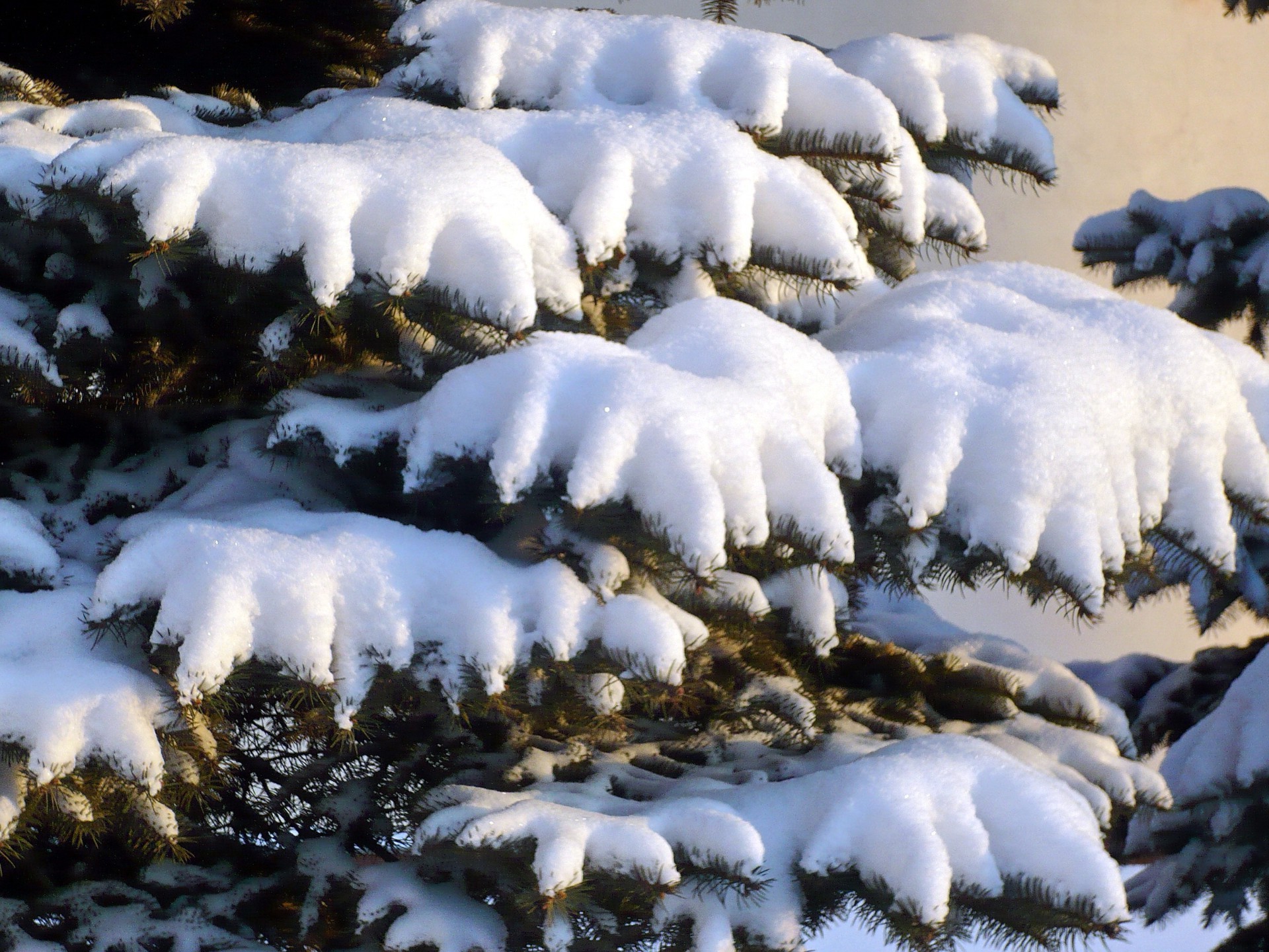 Ramas con hojas verdes sobre el fondo azul del bosque