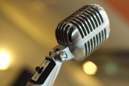 Cassette y fonógrafo para grabar música sobre fondo rosa