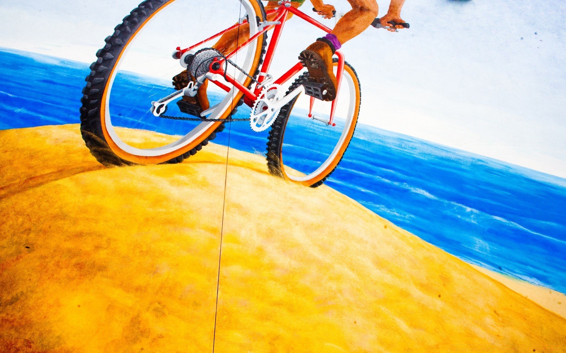 Paseo en bicicleta por las colinas de arena hacia el mar