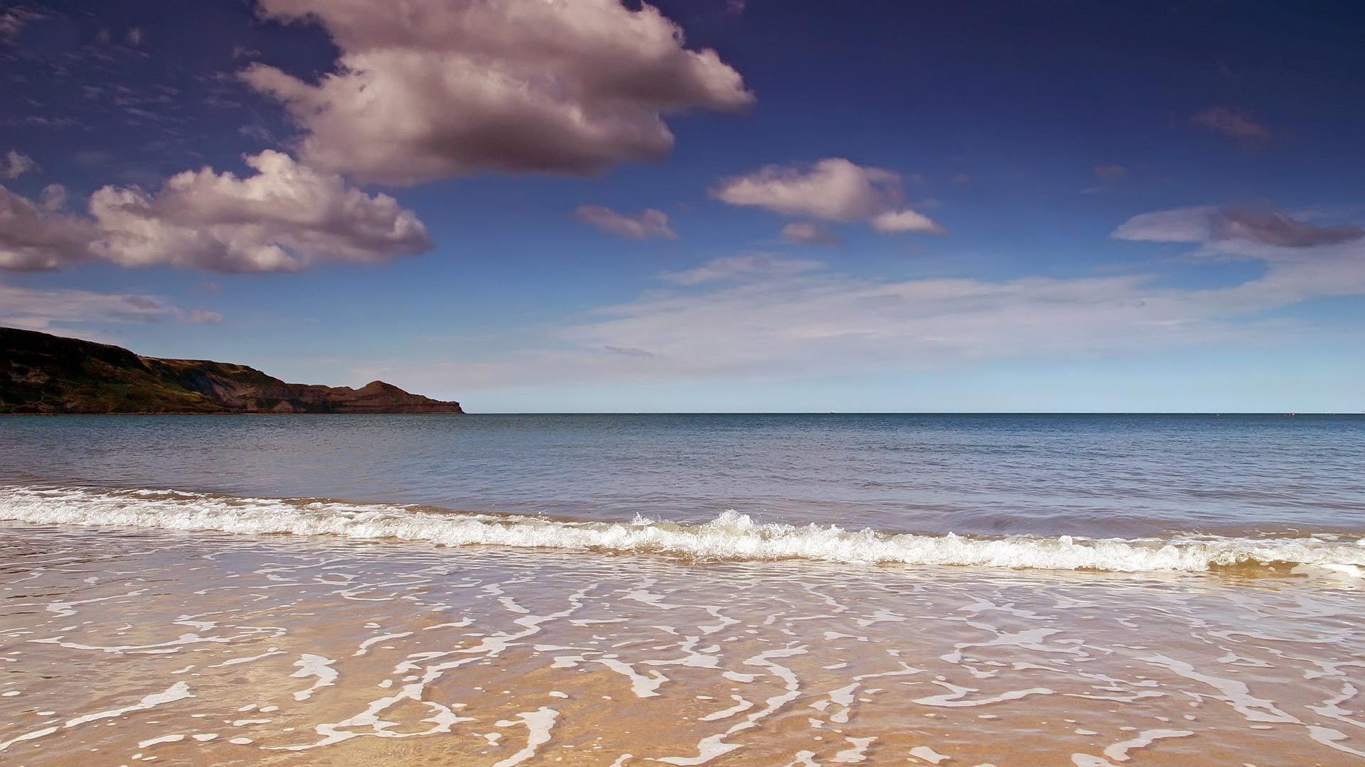 Puesta de sol en la playa de arena. Puesta de sol y palmeras