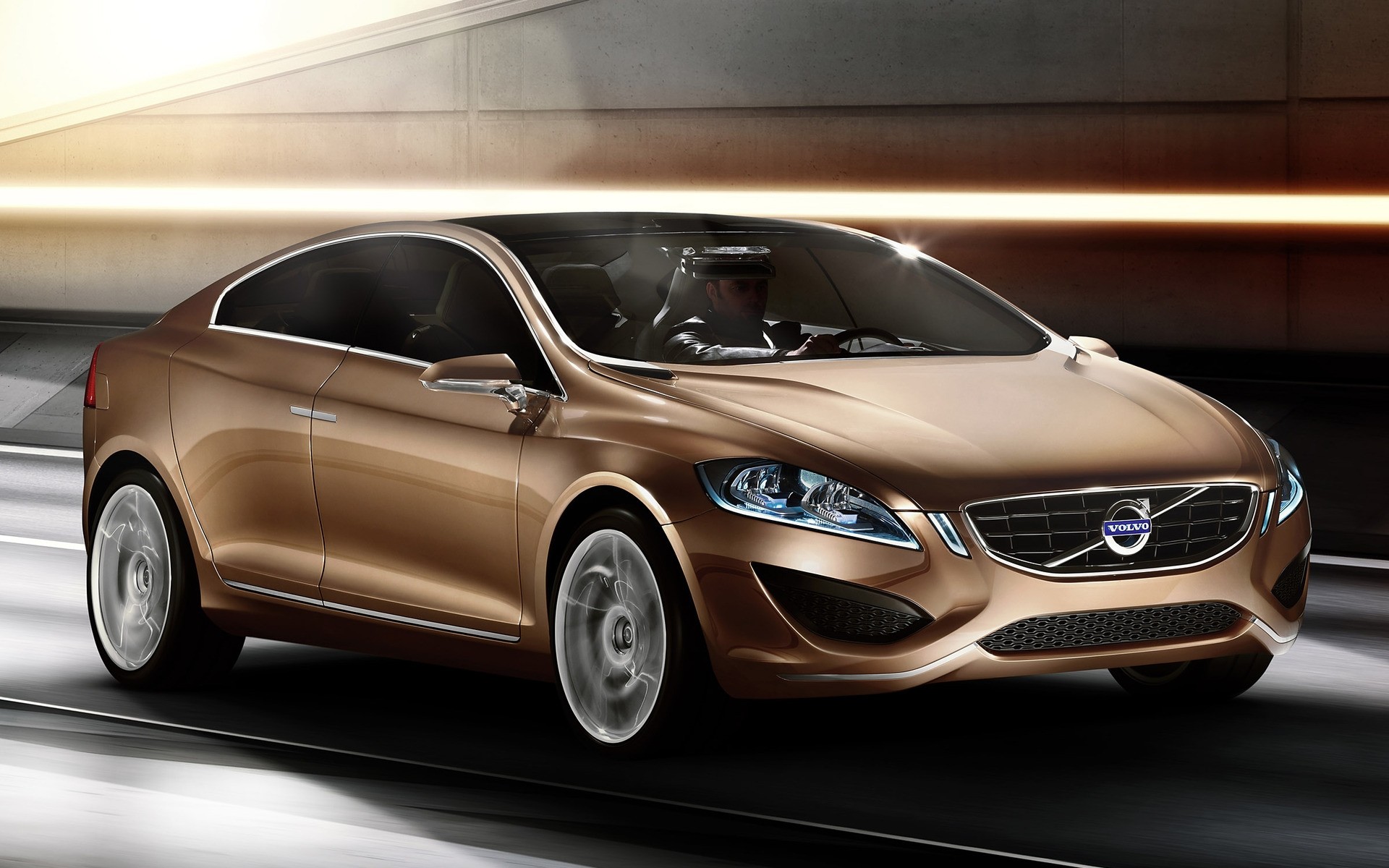 Coche deportivo de color bronce sobre fondo gris