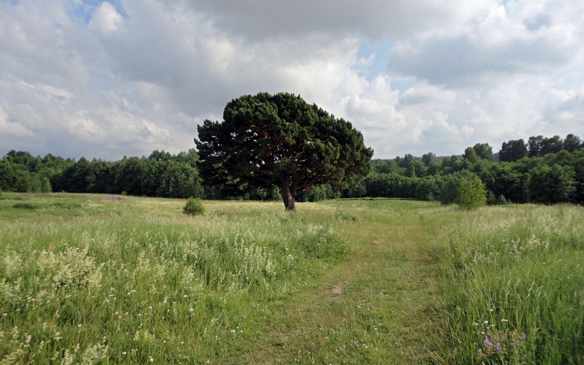 Un árbol solitario se encuentra en medio de un campo