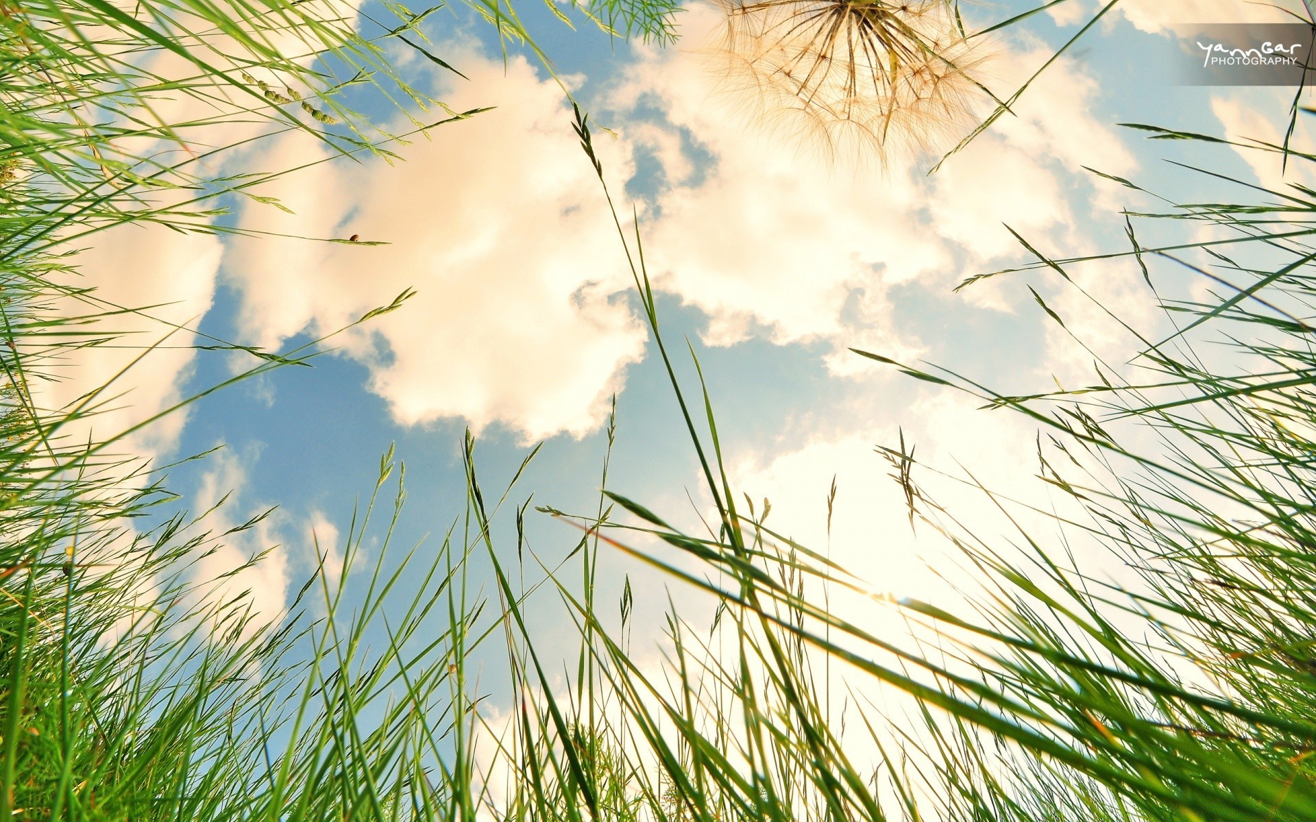 Fotografía macro del follaje de verano en los rayos del sol