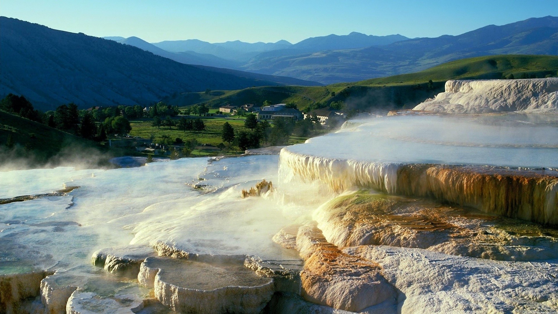 Montaña. Viajes y montañas. Reflejo en el agua. Montañas en la nieve