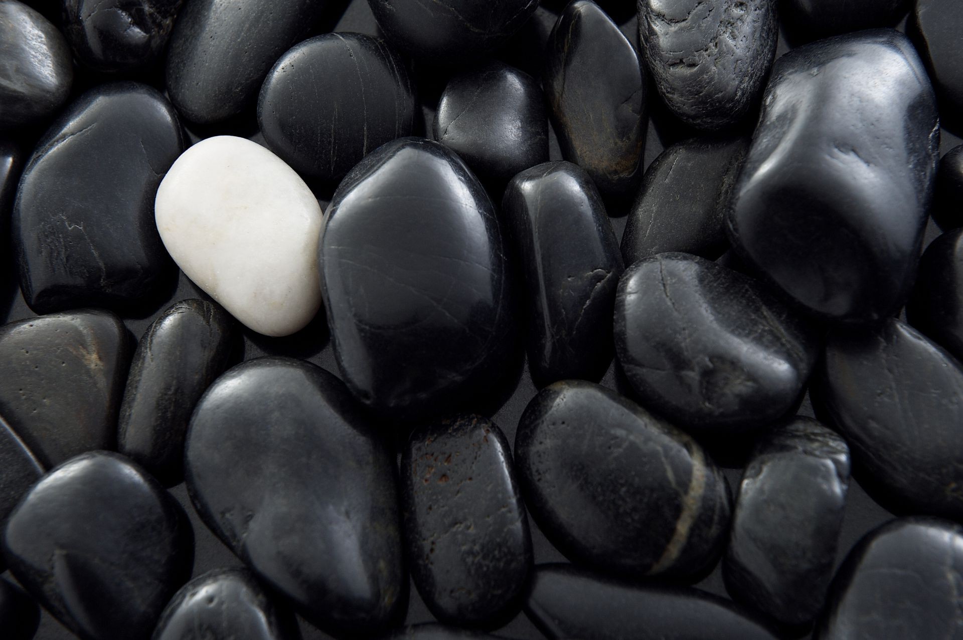 Paisaje en blanco y negro banco y carretera en primer plano detrás de muchas rocas arriba cielo con nubes