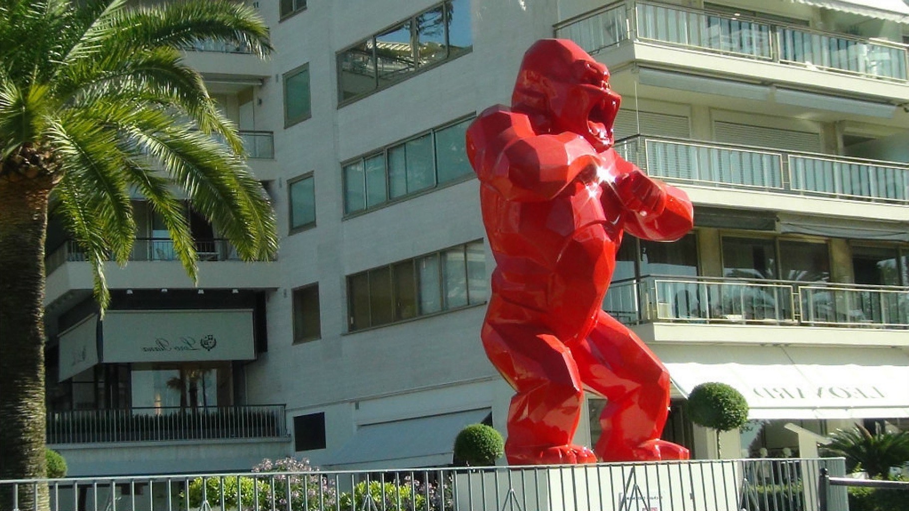 Estatua del gorila rojo. Arte contemporáneo en arquitectura