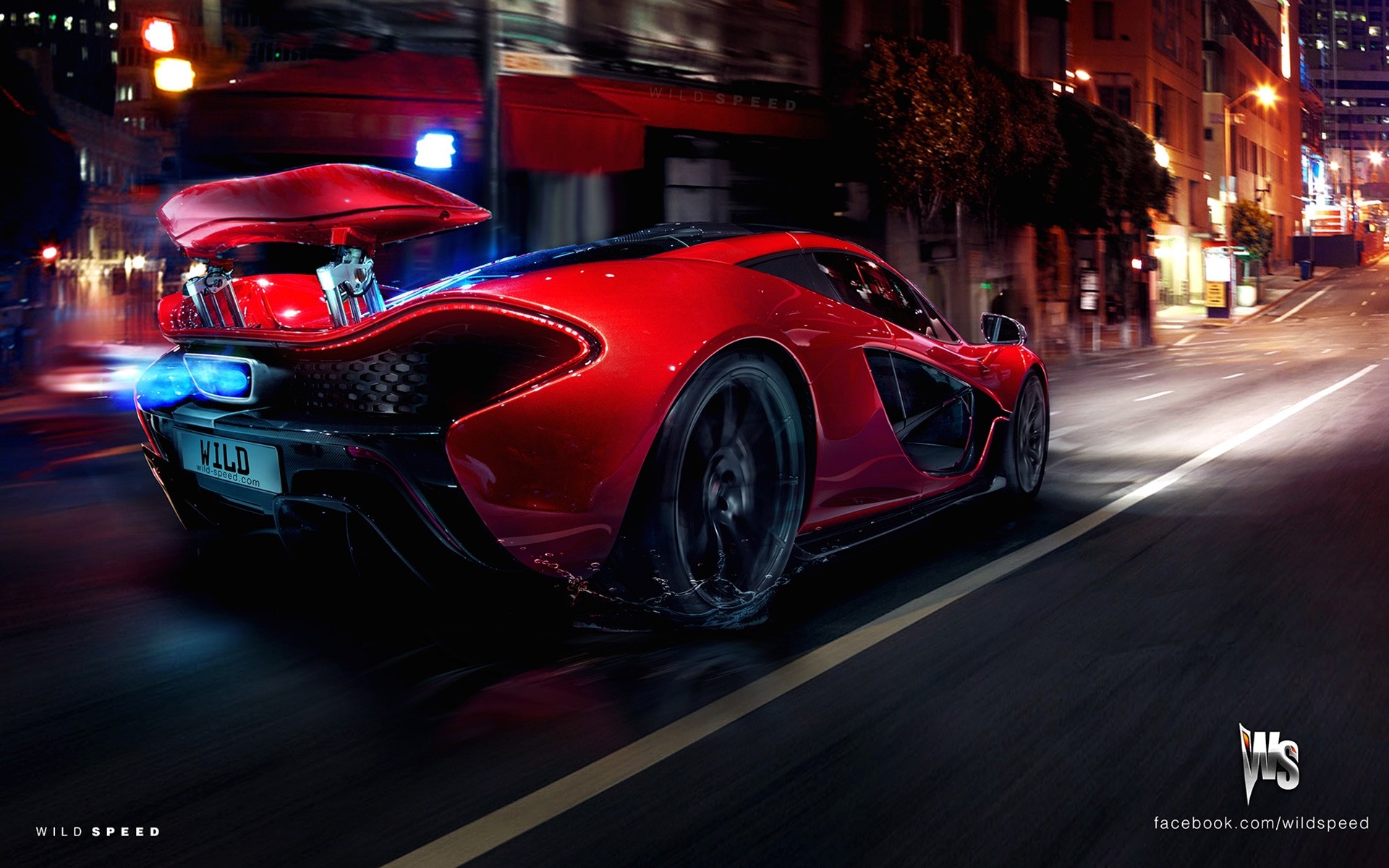 Foto de un hermoso coche rojo en el fondo del cielo al atardecer