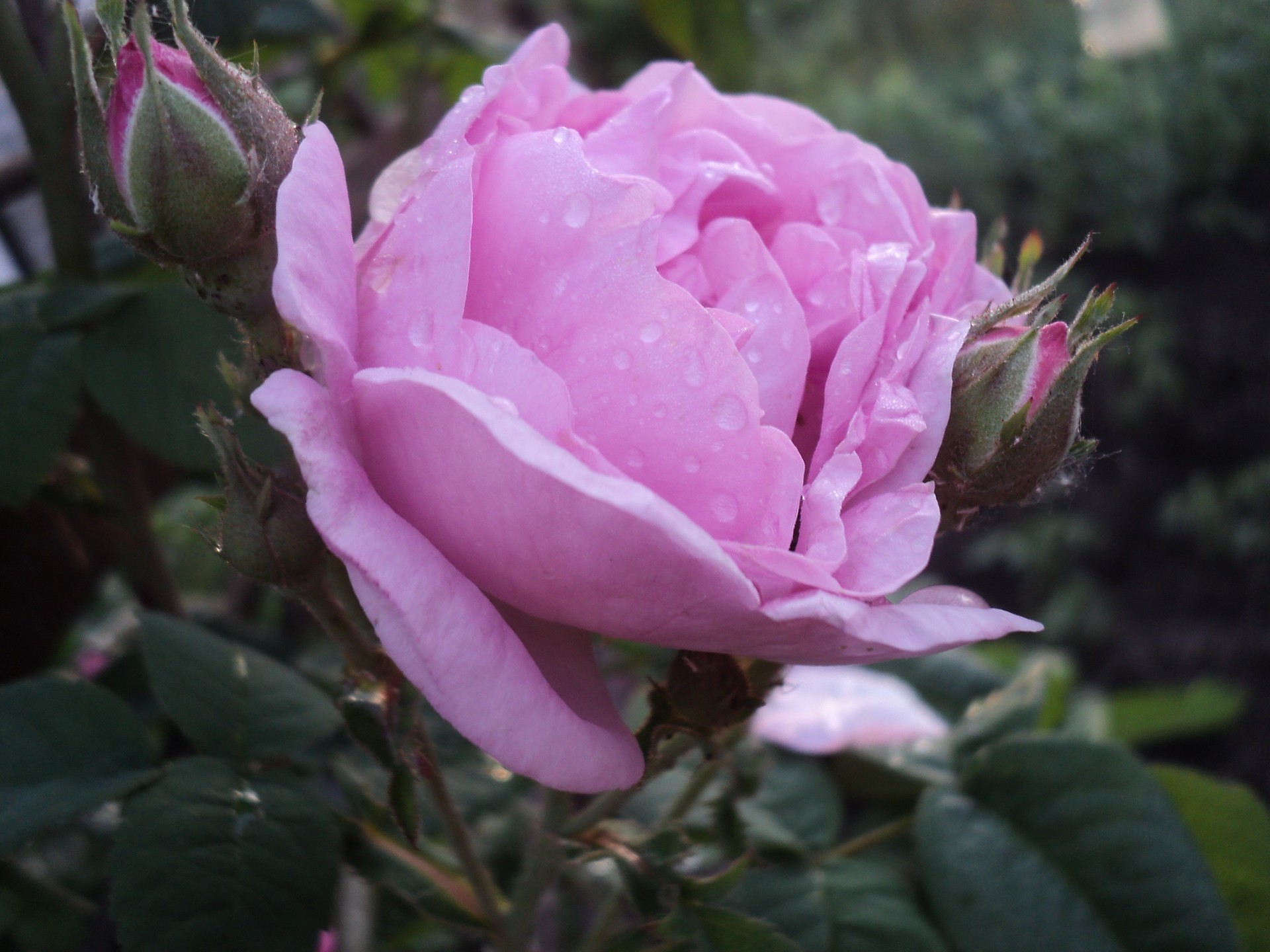 ROSA FLORECE EN LA MAÑANA DE VERANO