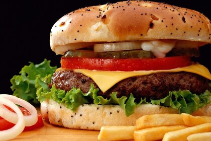 Chisburger con una enorme catlet está sobre la mesaChisburger con una enorme catlet está sobre la mesa