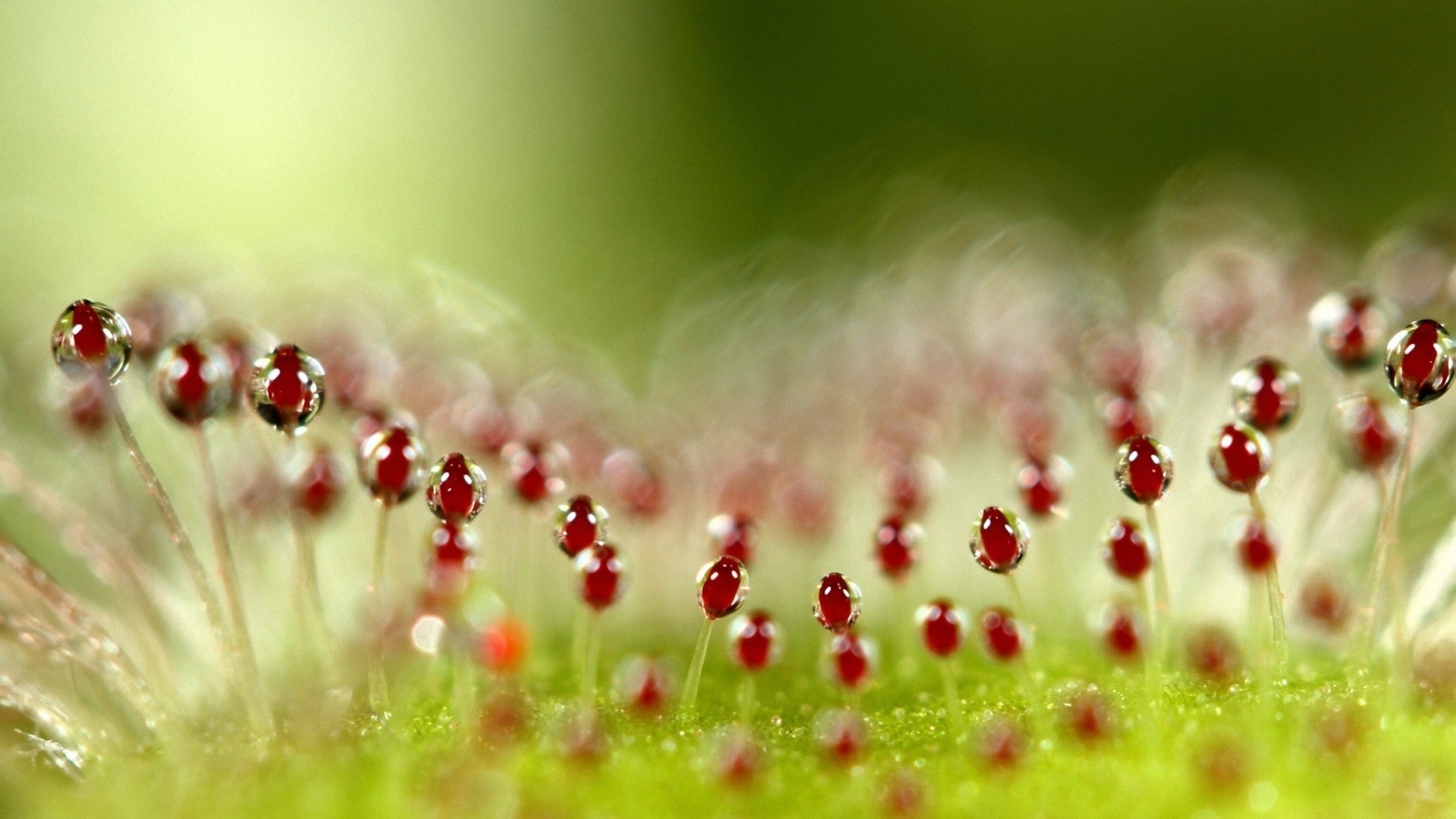 Gotas de agua en flores y hojas