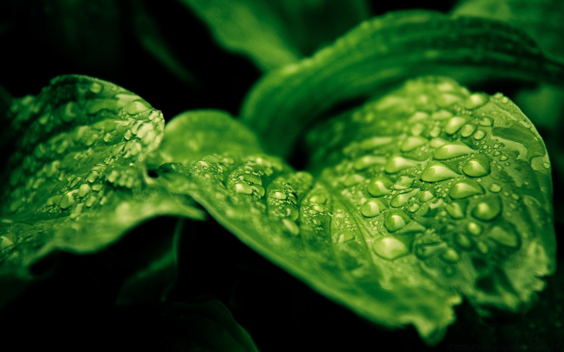 Gotas de agua rodantes sobre hojas grandes y brillantes