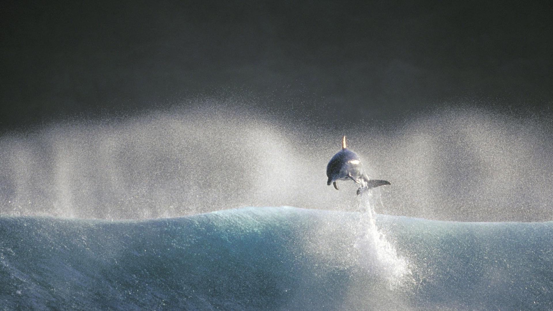 El océano, las salpicaduras. Pájaro volando sobre el agua