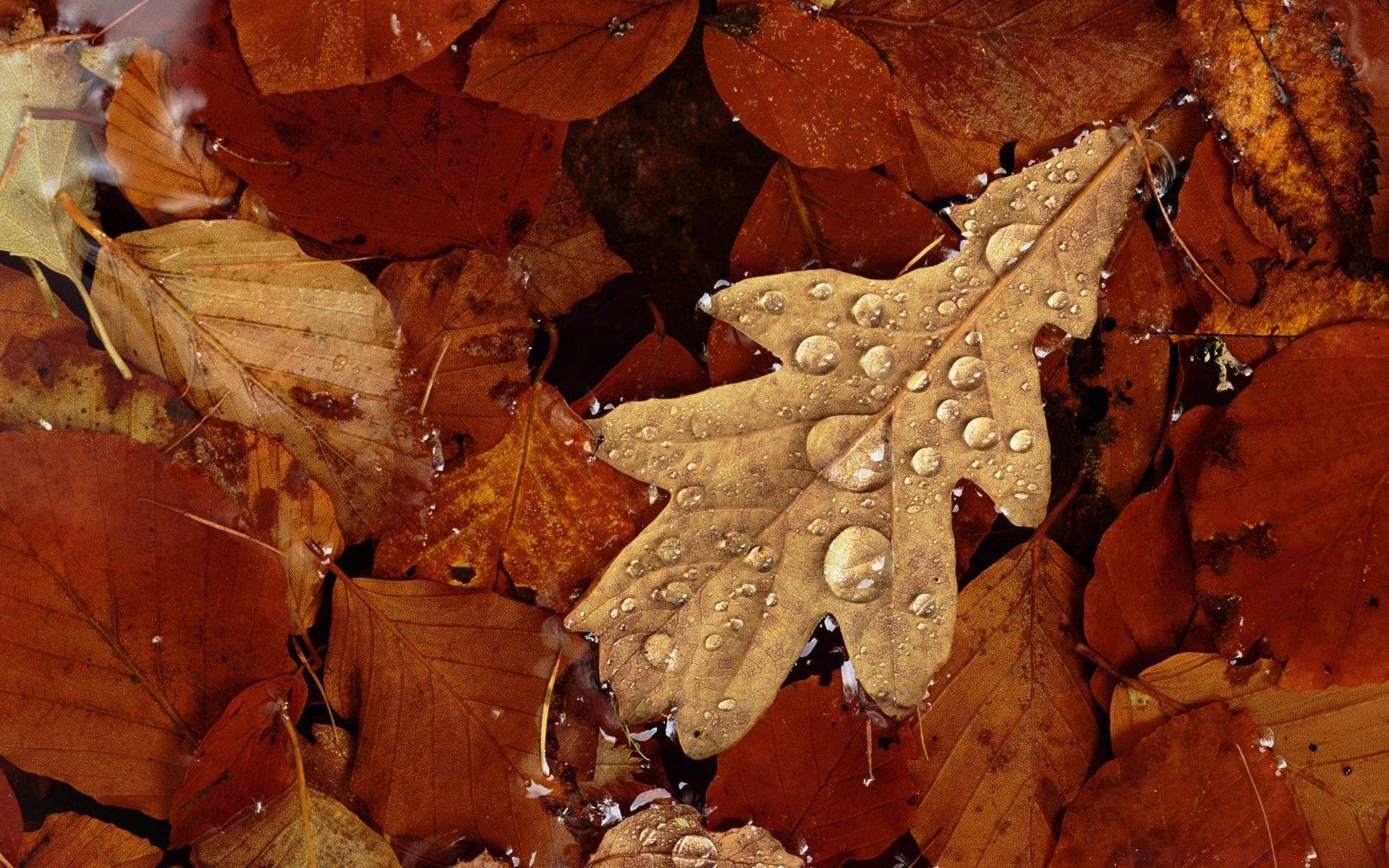 Alfombra naranja hecha de hojas de otoño. Otoño. Caída de hojas