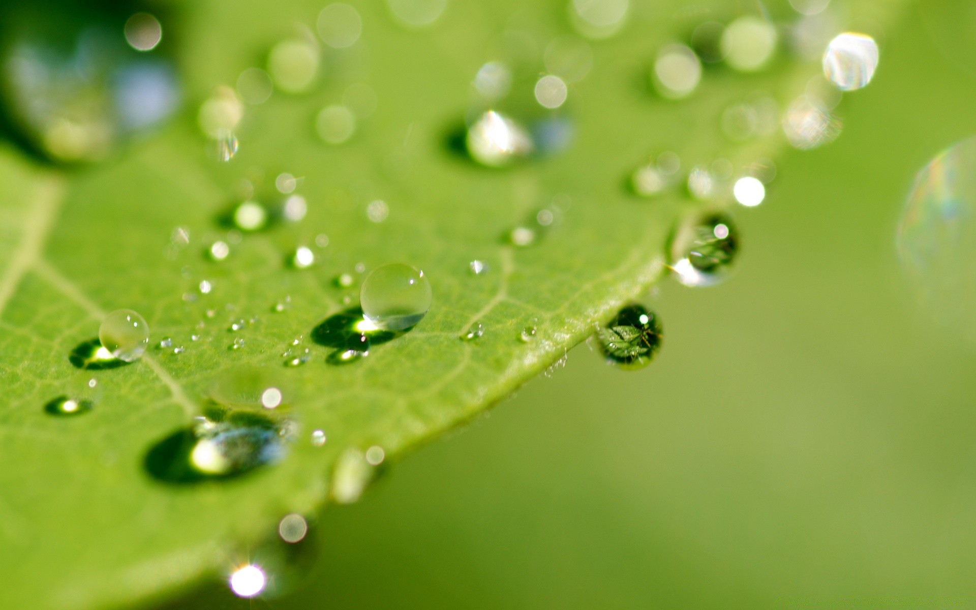 Macro fotografía de gotas de rocío en la hierba después de la lluvia en azul