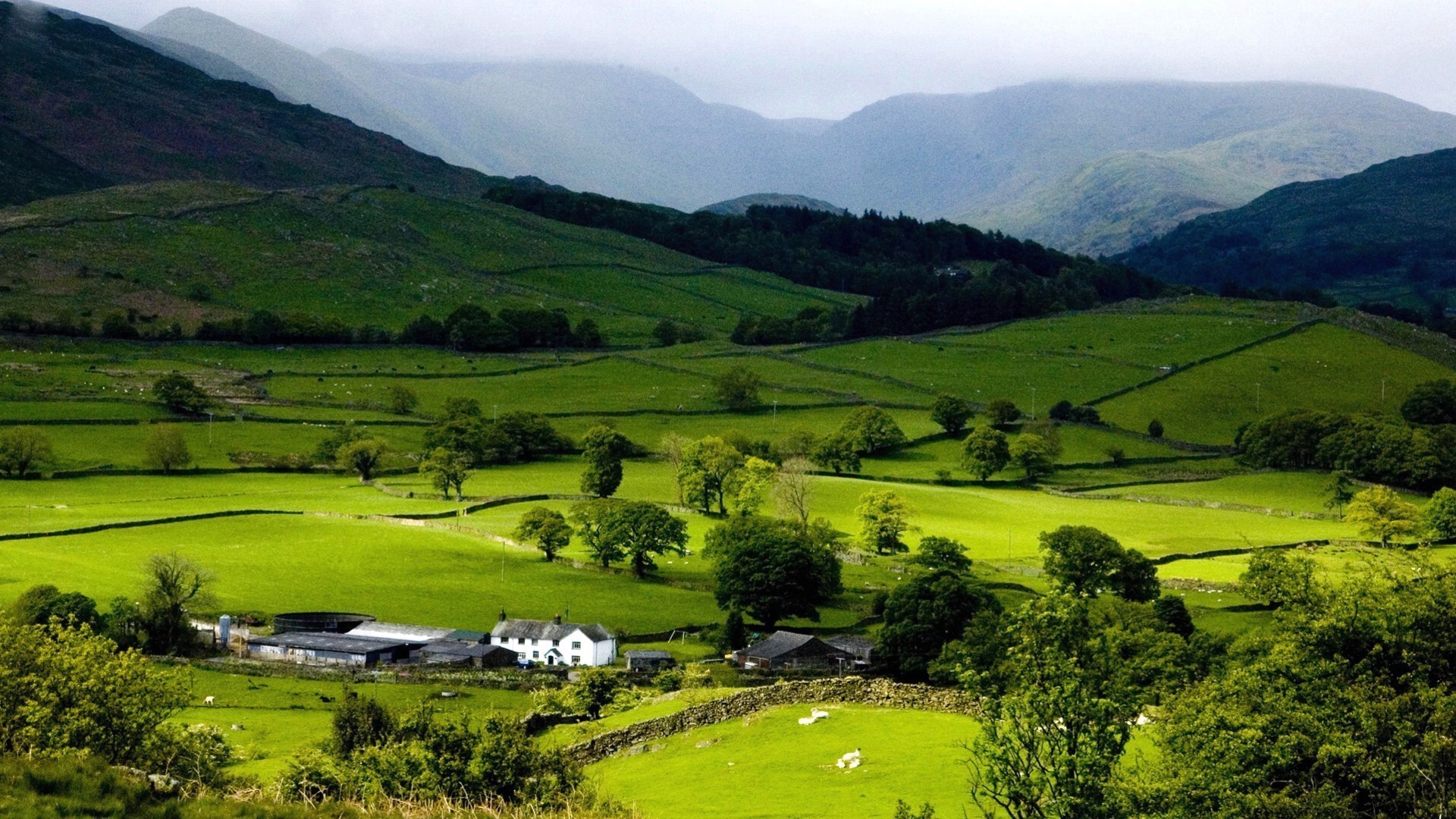 Casa solitaria en un valle verde