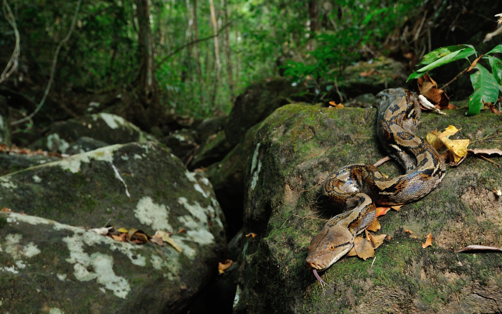 Serpiente gruesa marrón en la naturaleza