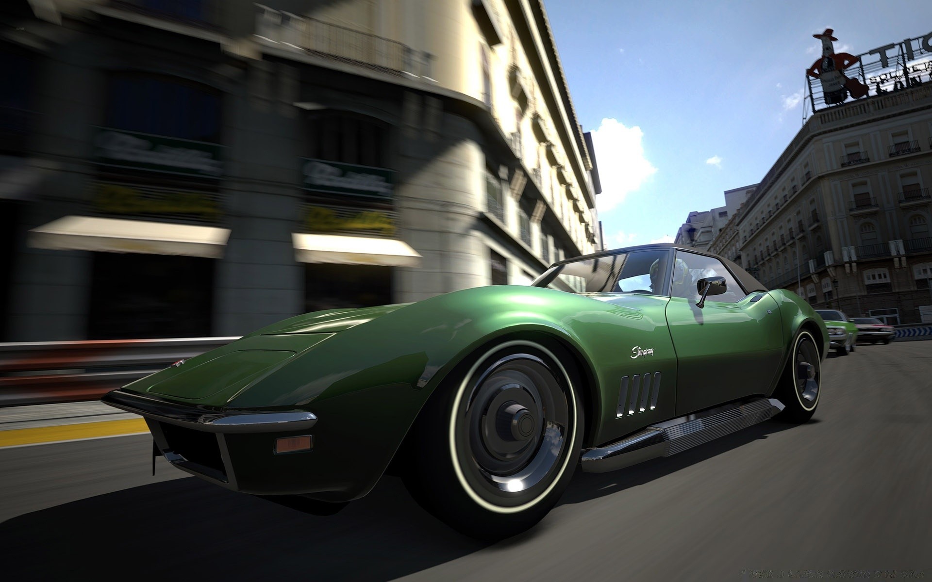 Deportivo, potente descapotable en la ciudad