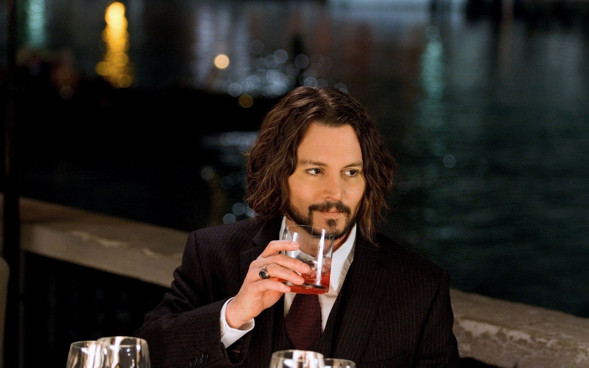 Actor junto al agua con un vaso en la mano