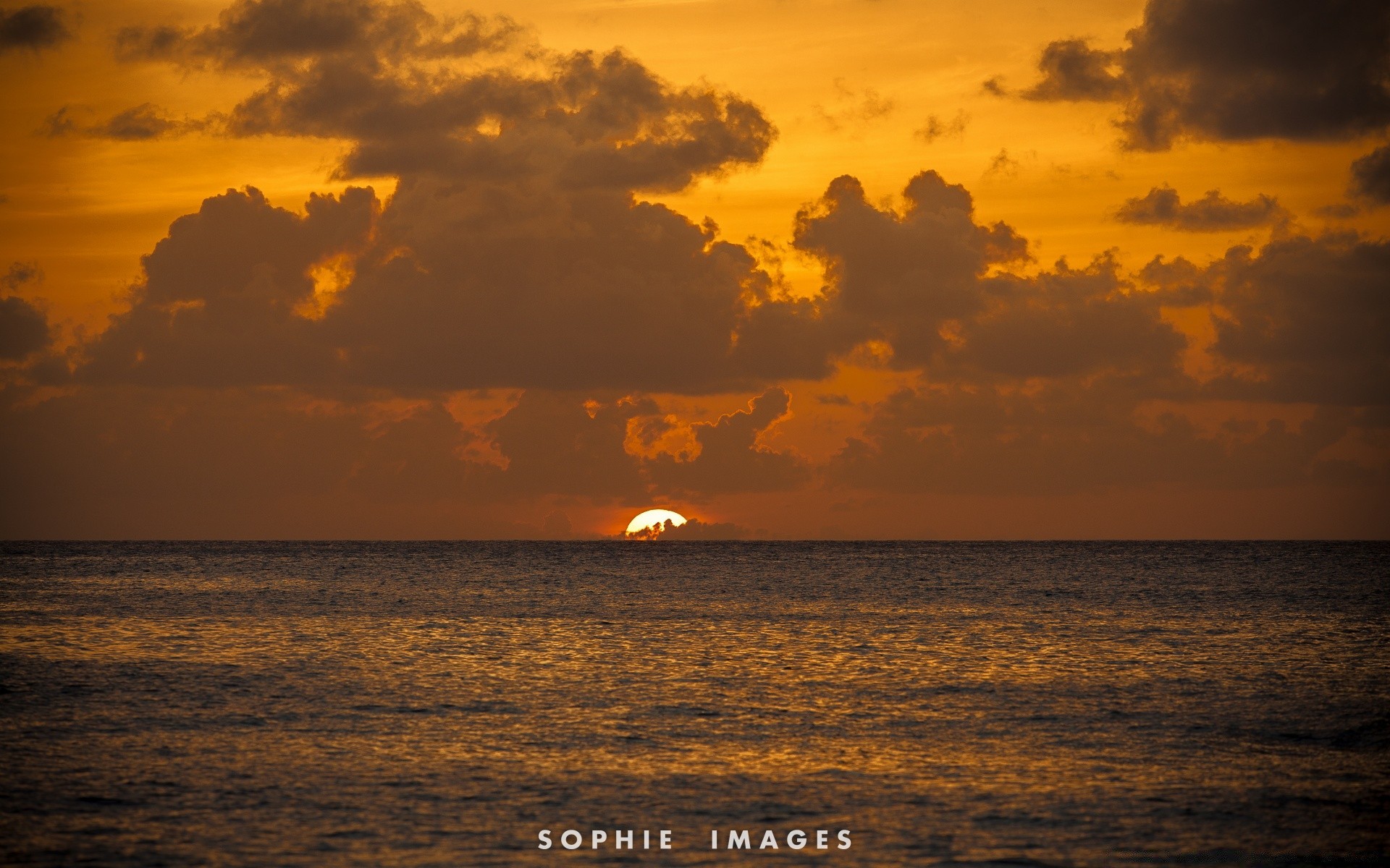 La calma del mar y el sol escondido detrás de las nubesLa calma del mar y el sol escondido detrás de las nubes