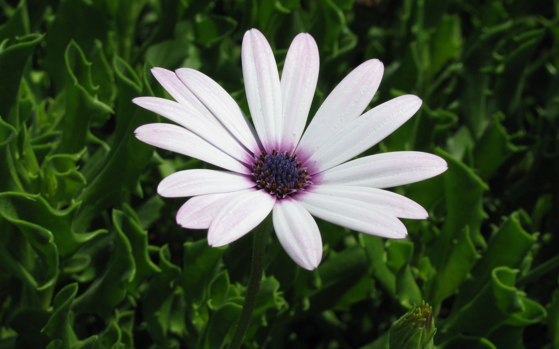Flor blanca sobre fondo de hierba verde