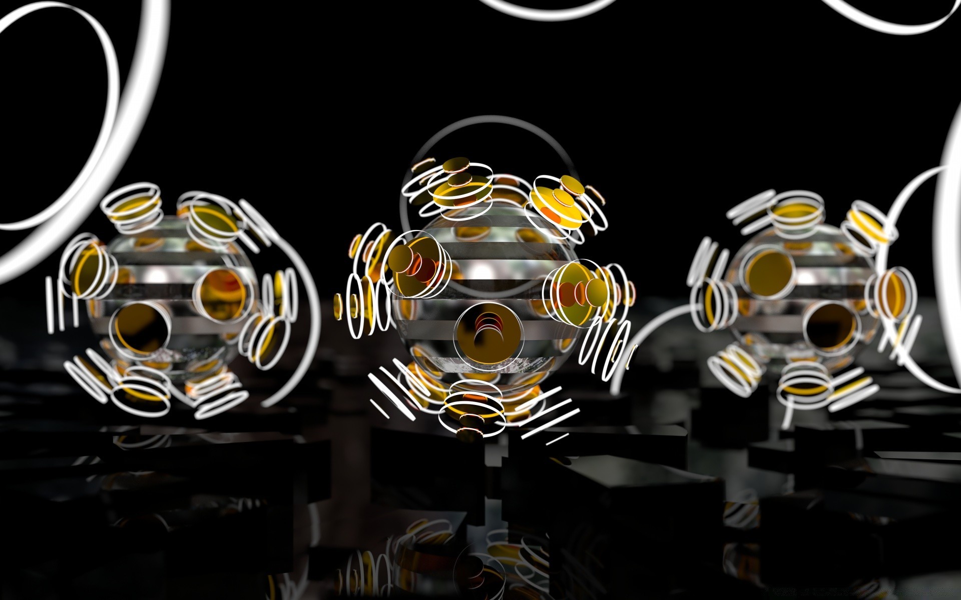 Moléculas de coronavirus en resortes de color amarillo grisáceoMoléculas de coronavirus en resortes de color amarillo grisáceo