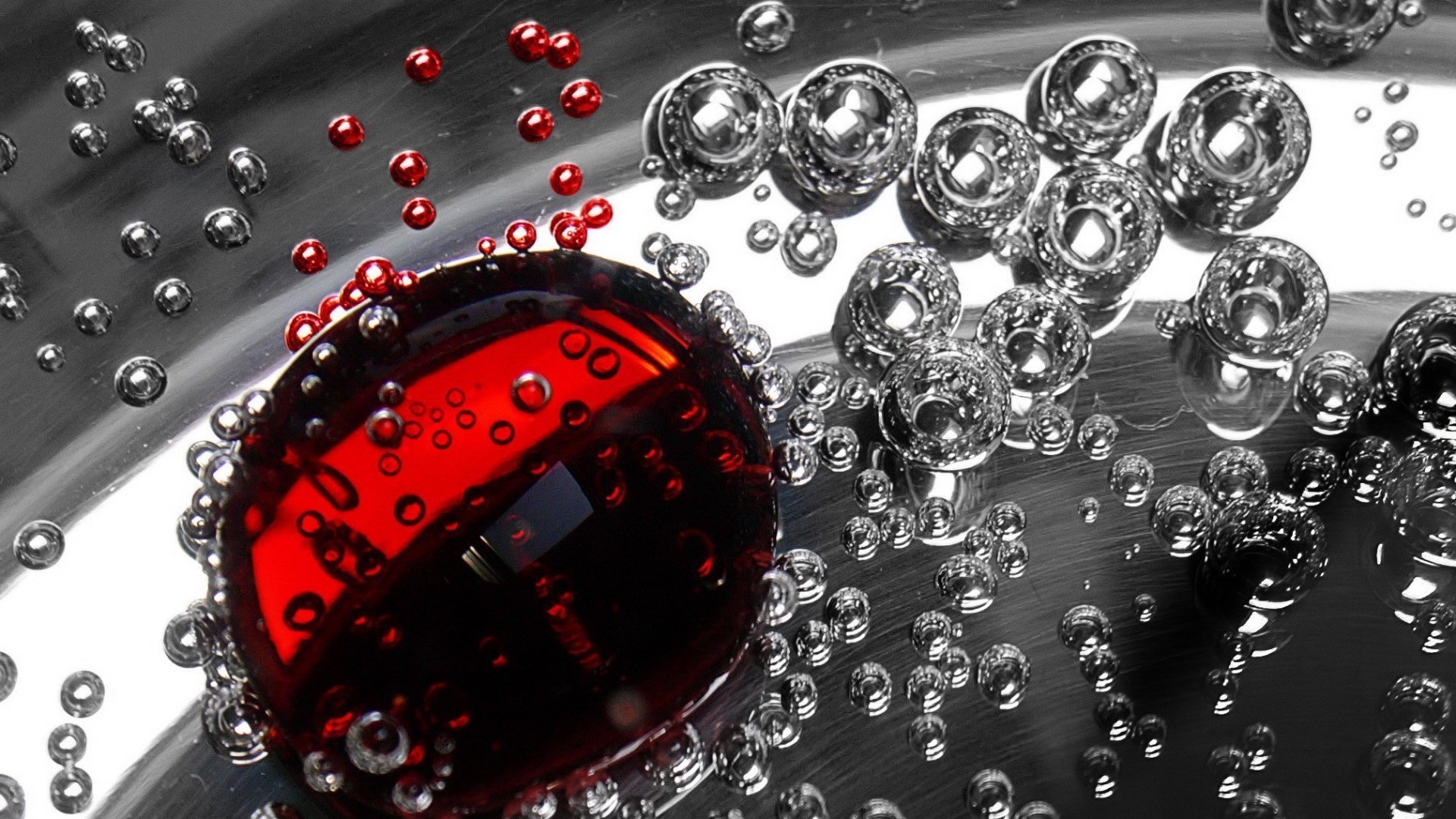 Gotas de agua con una gota roja