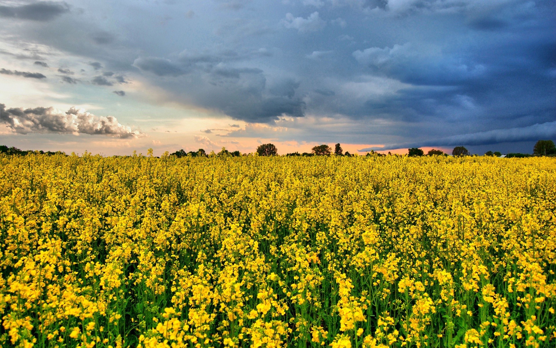 Cielo azul, sol cegador Campo verde iluminado por el sol abrasador