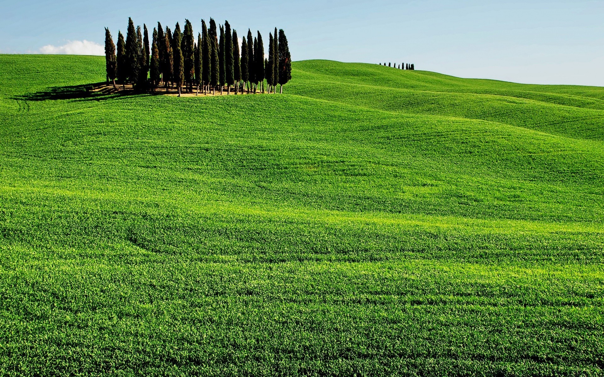 El paraguas naranja se encuentra en el bosque sobre la hierba verde