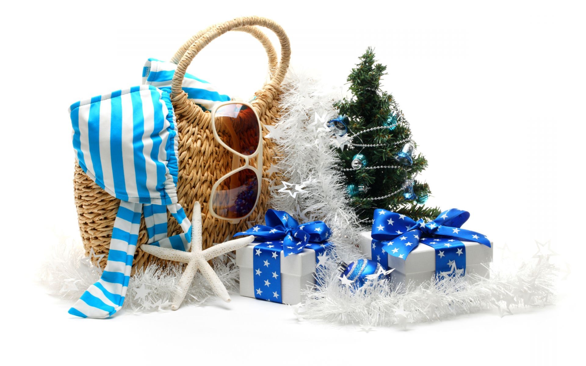 Paisaje de año nuevo con un río decorado con una casa, un árbol de Navidad y un muñeco de nieve
