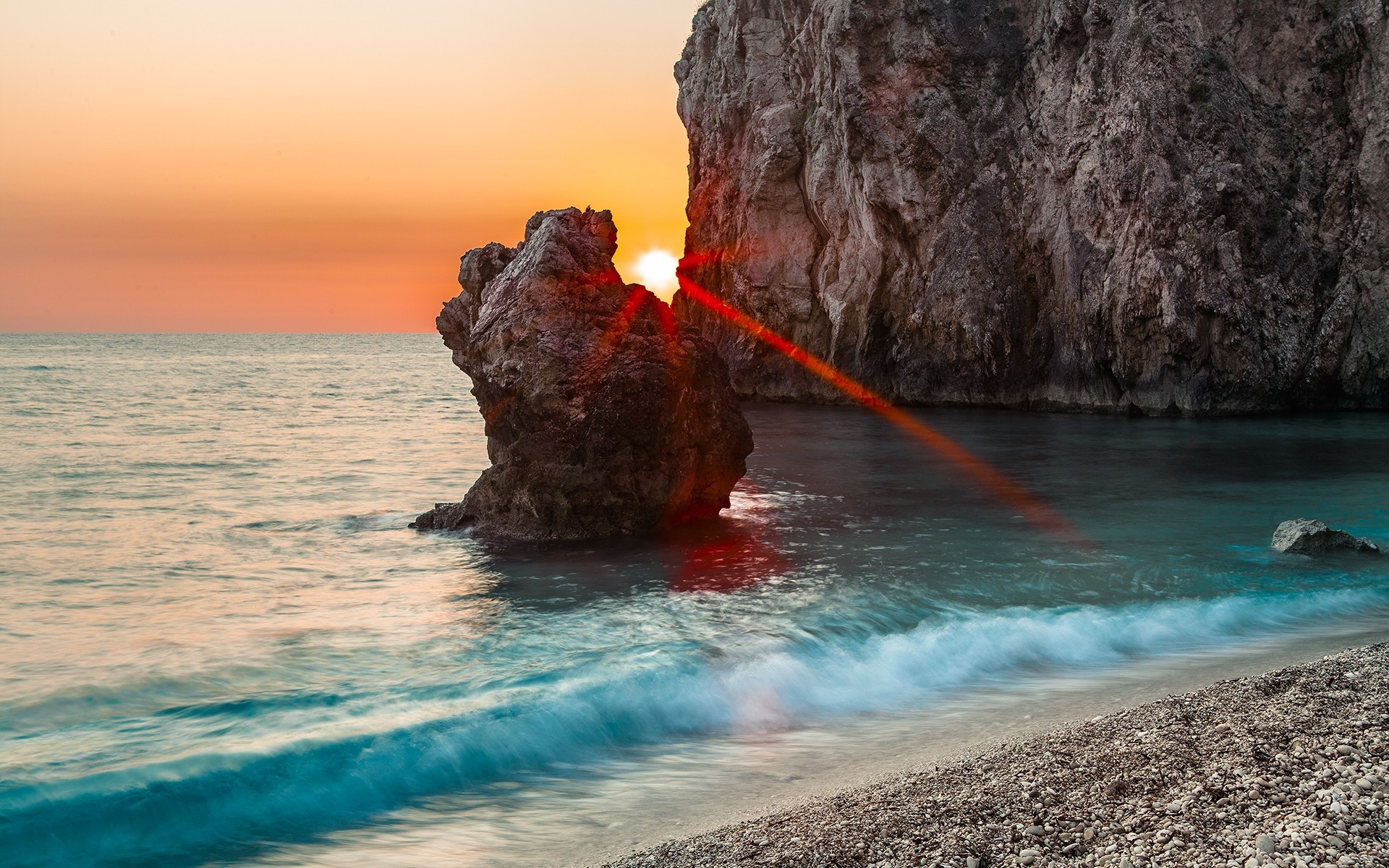 Rayos de sol entre las rocas