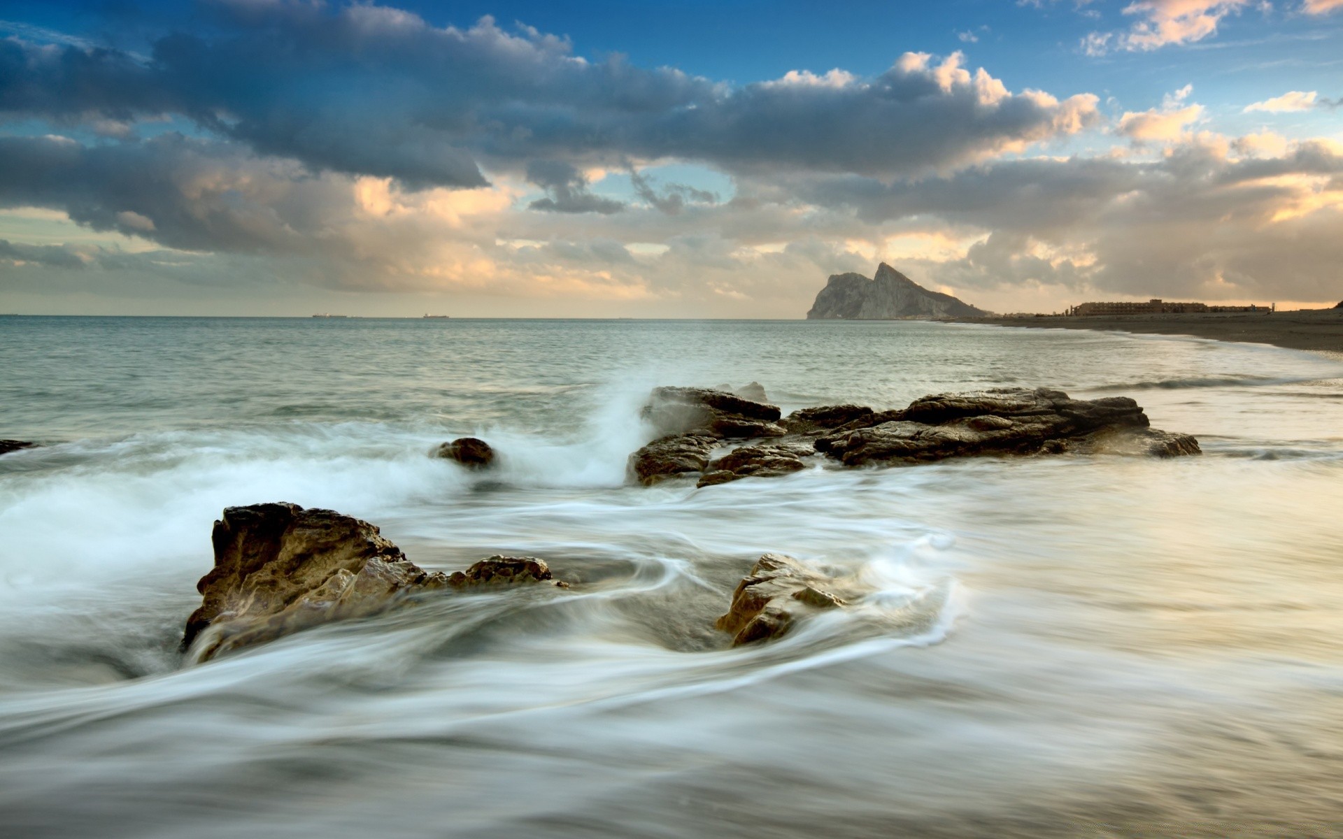 Paisaje marino con una roca en la distancia