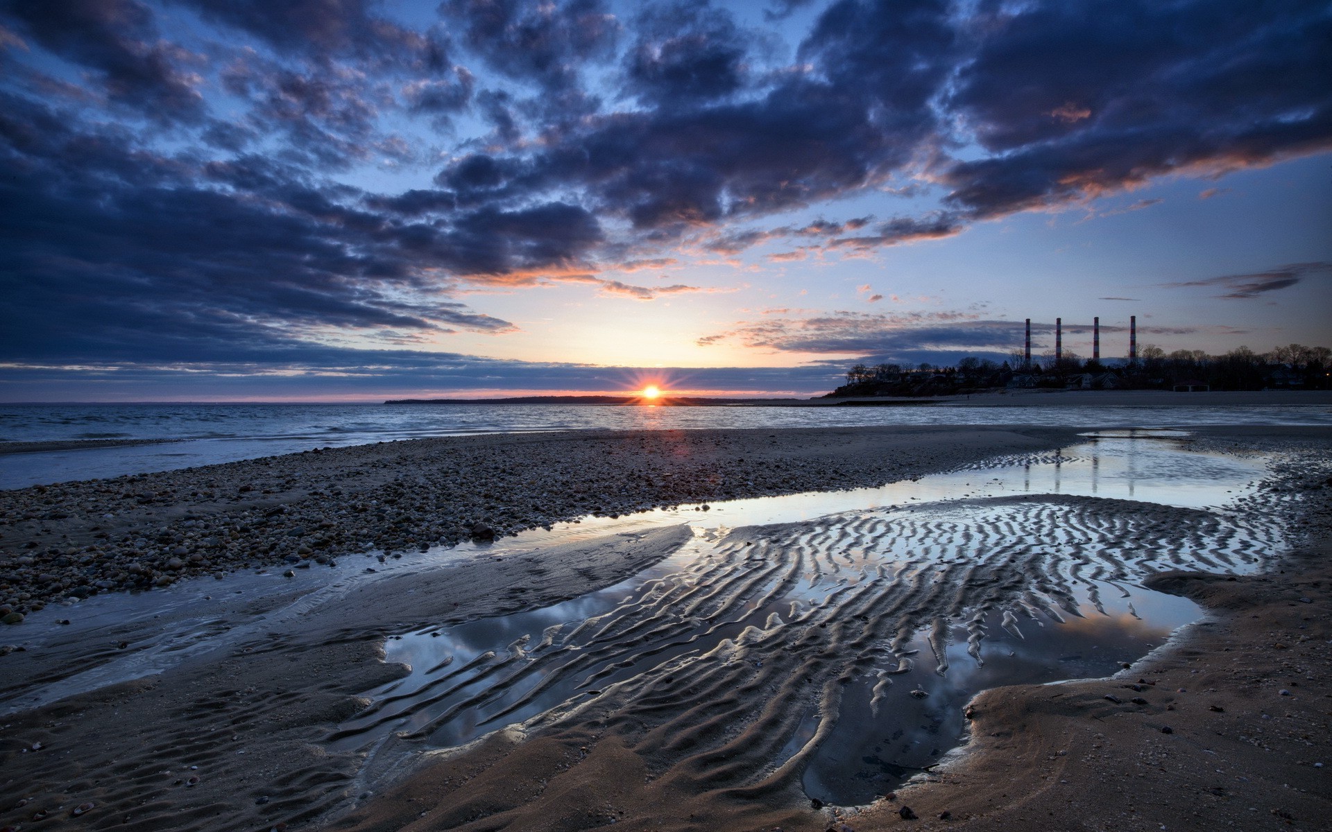 Hermosa puesta de sol brillante en la playa de la tardeHermosa puesta de sol brillante en la playa de la tarde