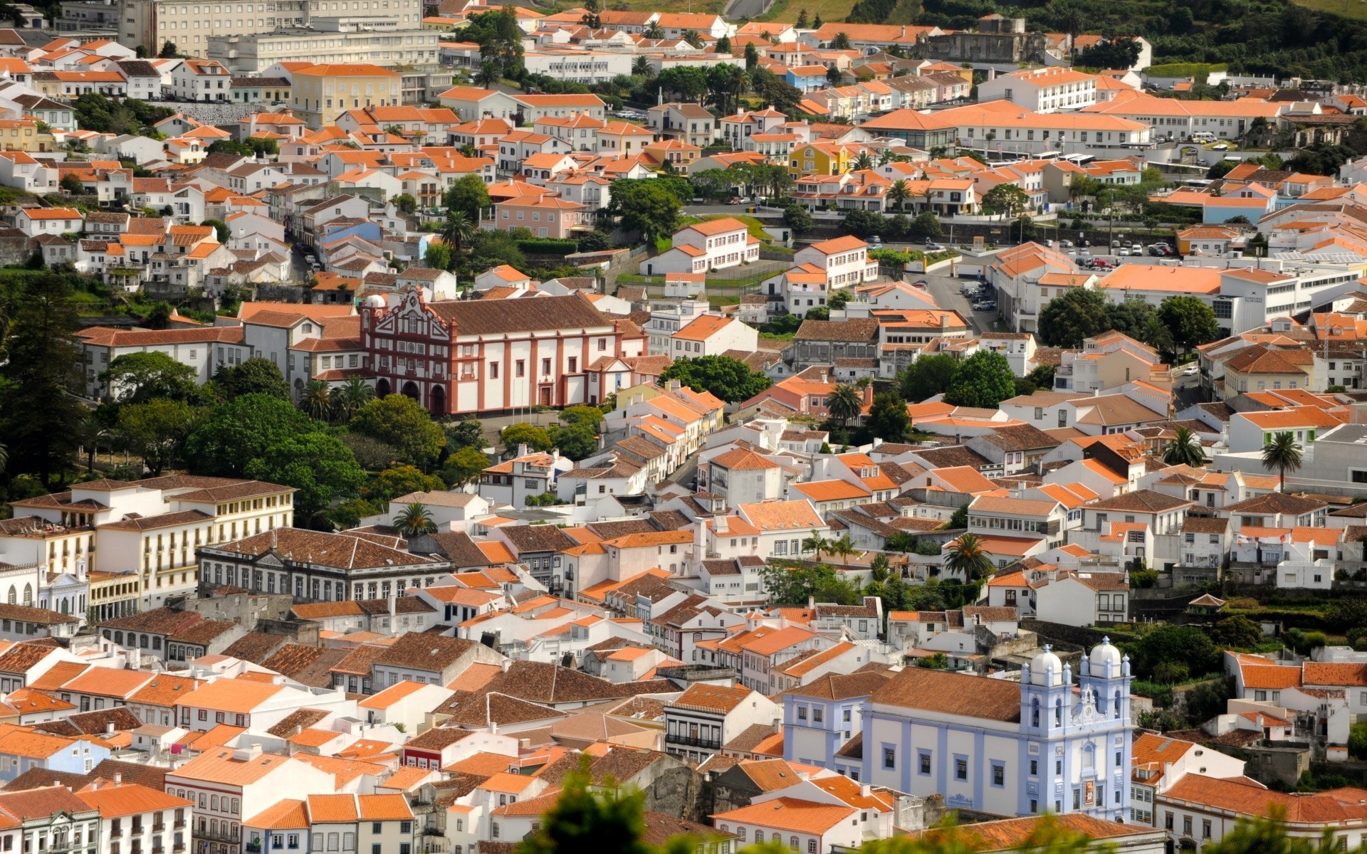 Vista de la ciudad de la mañana desde arriba. Viaje por Europa