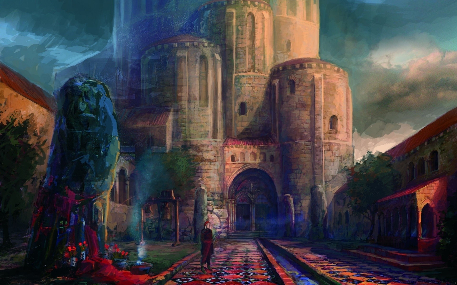 Caballero con armadura en el fondo de la naturaleza brumosa en las montañas