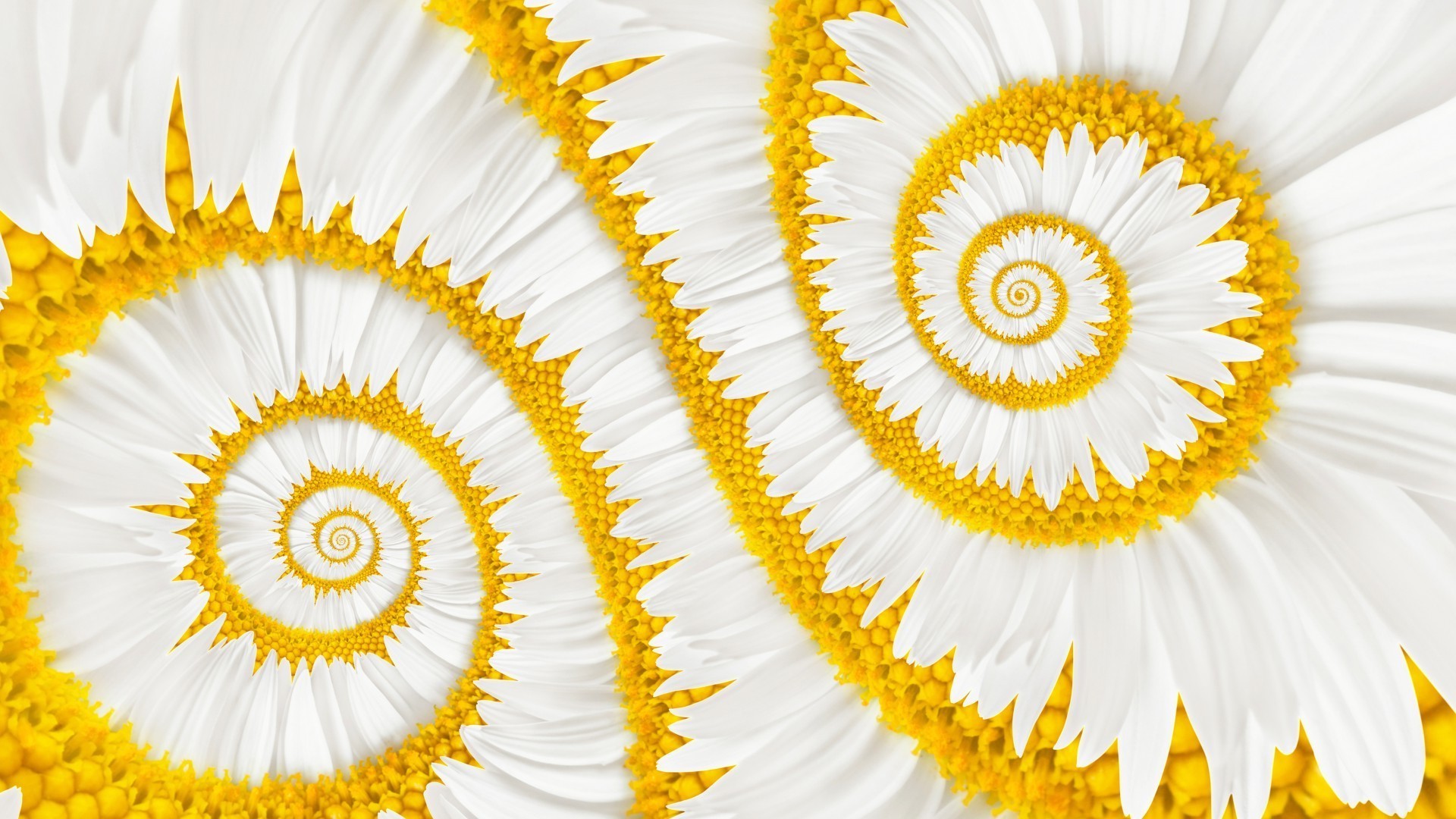 Una brillante abstracción de verano en espiral basada en margaritasUna brillante abstracción de verano en espiral basada en margaritas