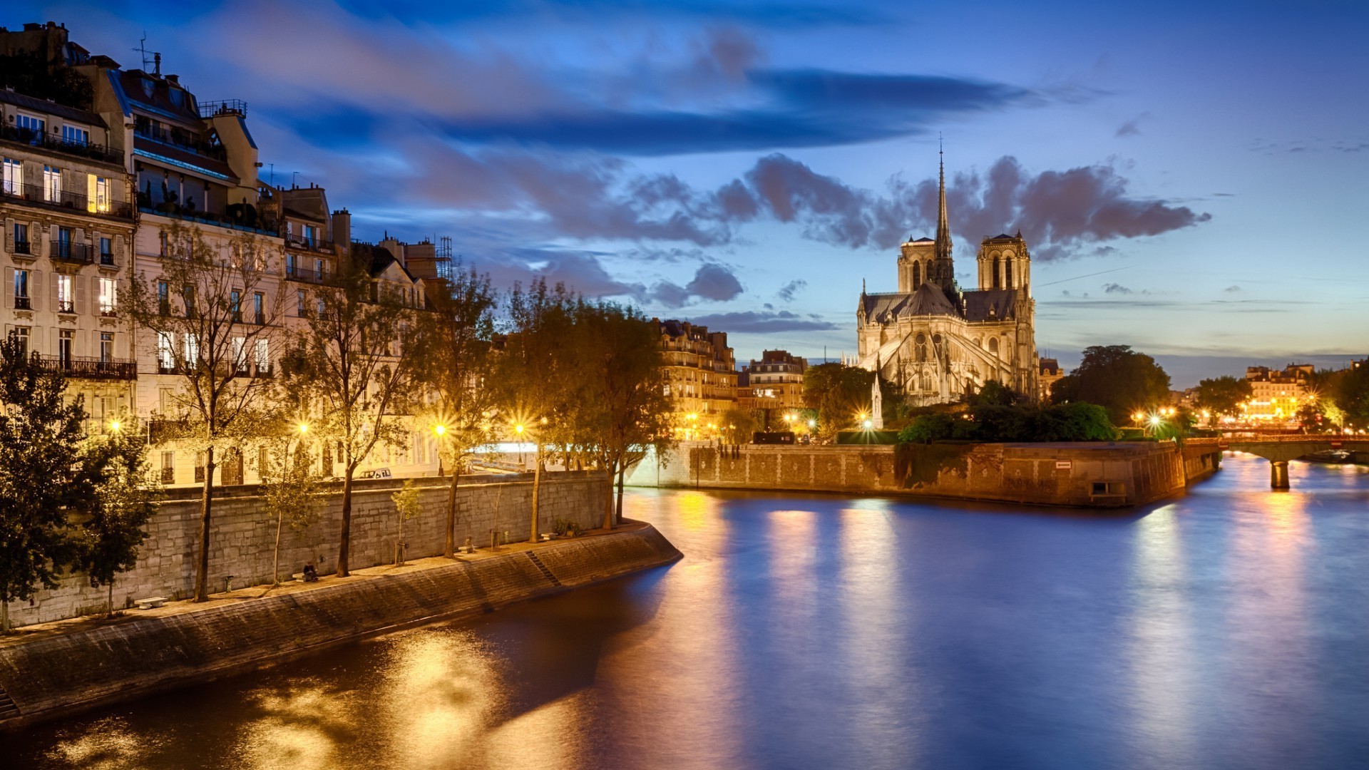 Brillante ciudad nocturna junto al agua. Con edificios elegantes