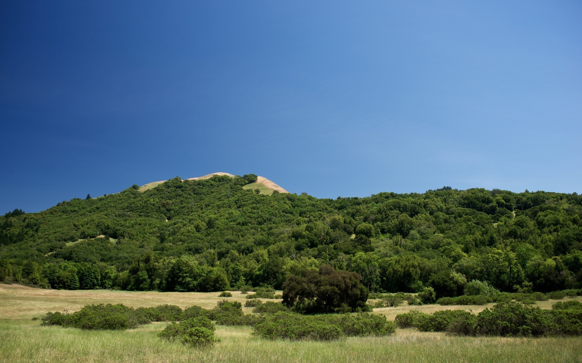 Camino del bosque en medio del cielo azul y la naturaleza verde