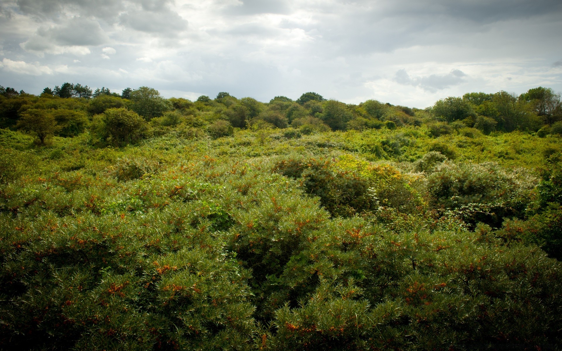 El verde joven del campo con un edificio de apartamentos visible en la distancia