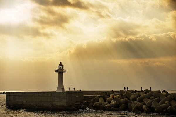 Paisaje faro en la calma puesta de sol