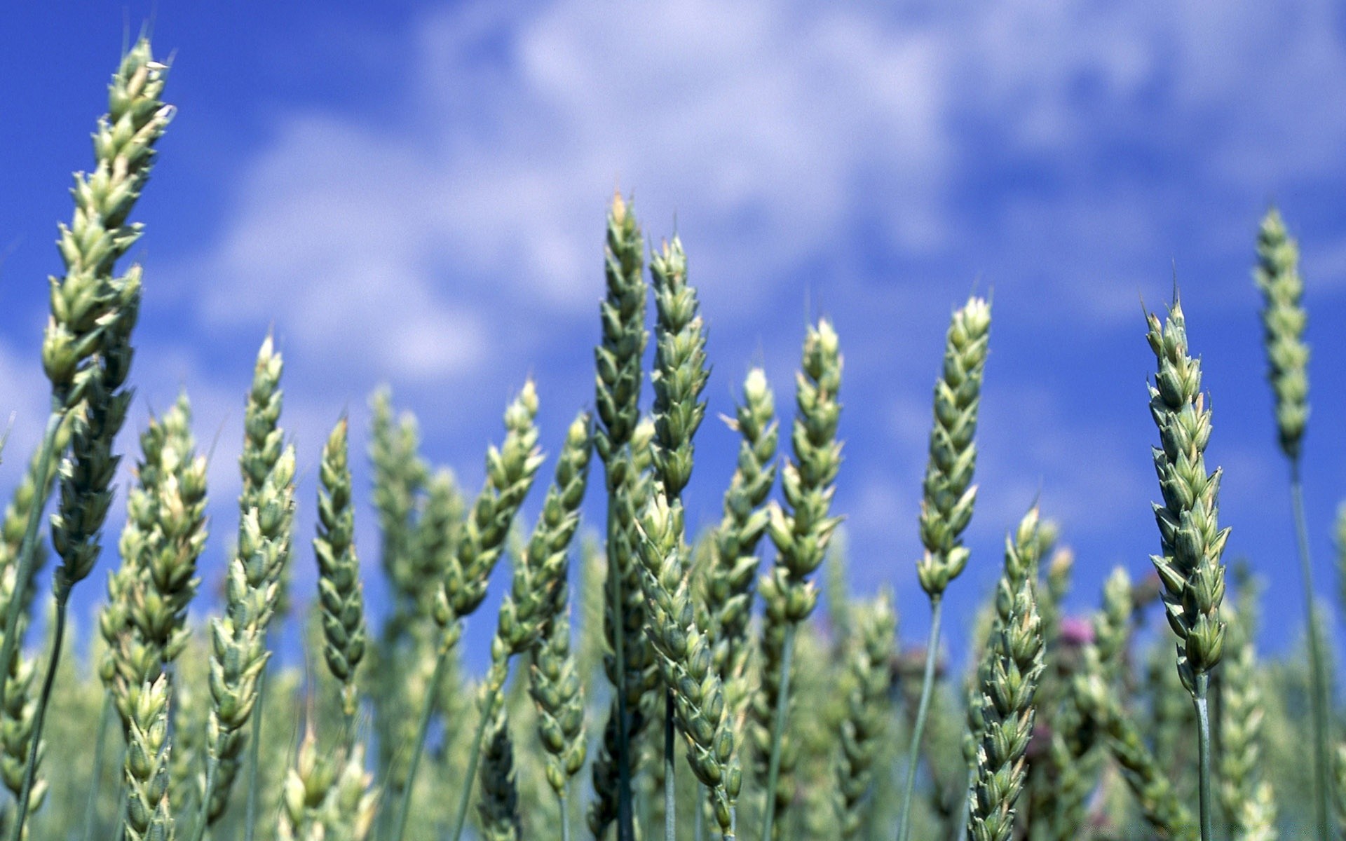 Espigas de trigo bajo el cielo azul