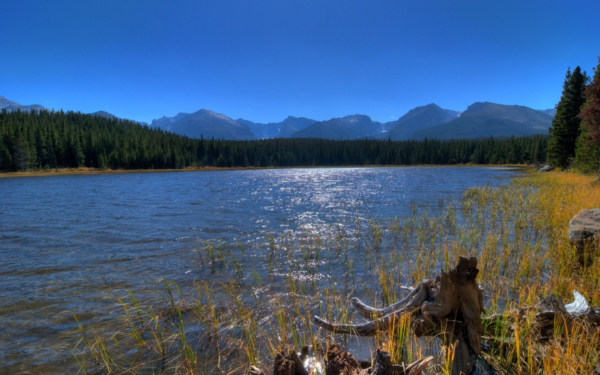 Montañas, cielo y río en un día de verano