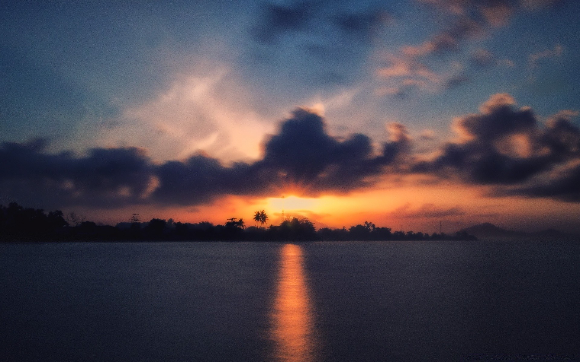 Paisaje de verano con puesta de sol y elementos fantásticos