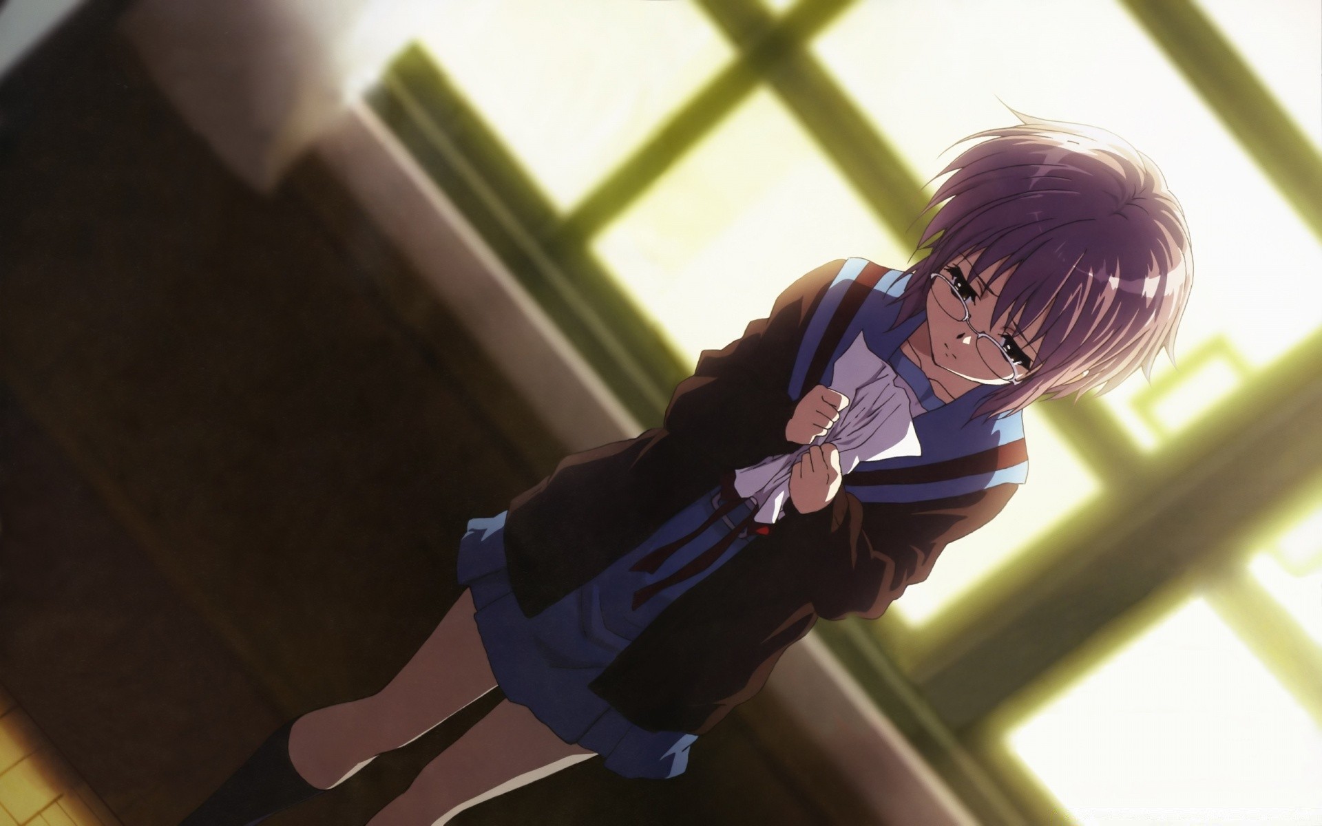 Anime. Captura de pantalla. Chica con gafas