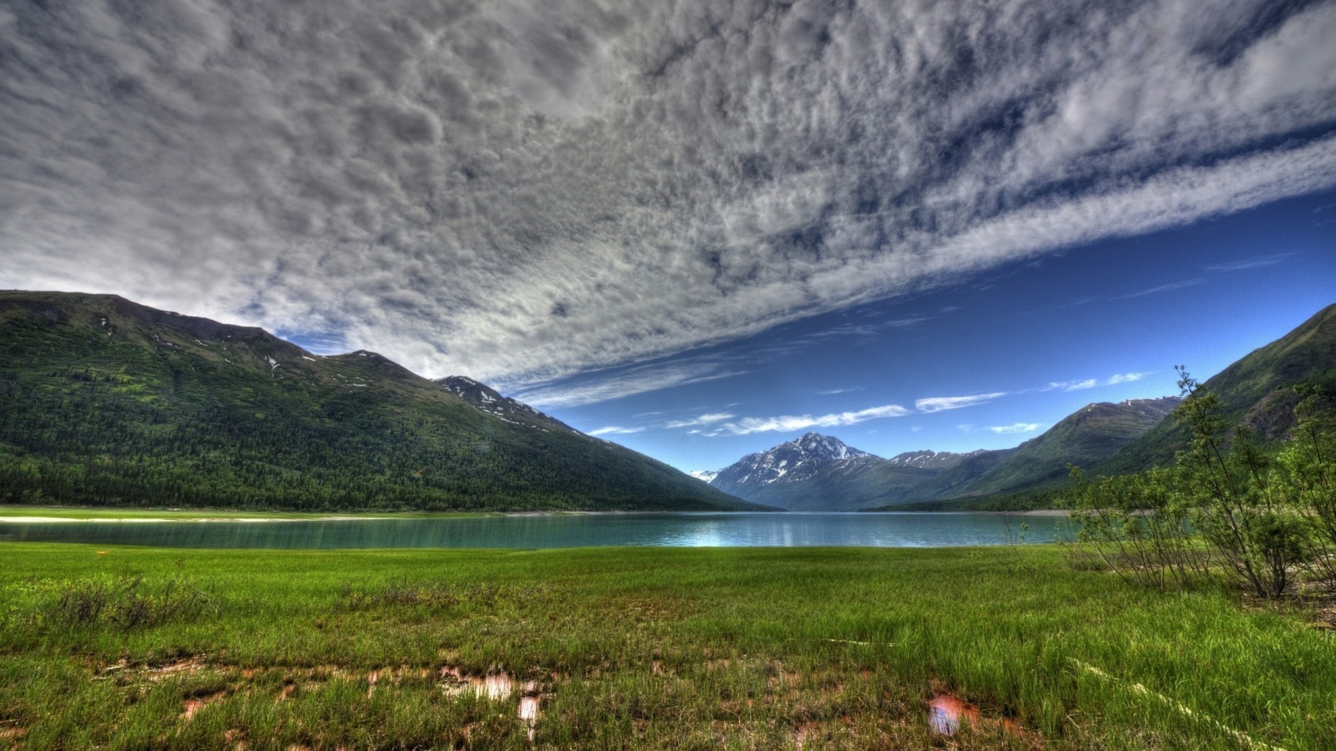 Paisaje Minecraft juego. Ríos, montañas y bosques