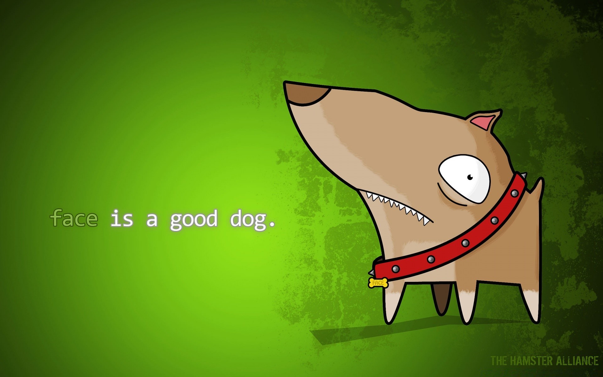 Divertido perro dibujado en un collar sobre un fondo verdeDivertido perro dibujado en un collar sobre un fondo verde