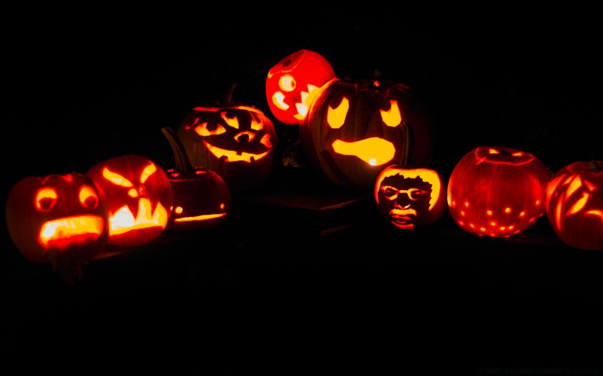 Fiesta de Halloween y calabazas con diferentes emoticonos
