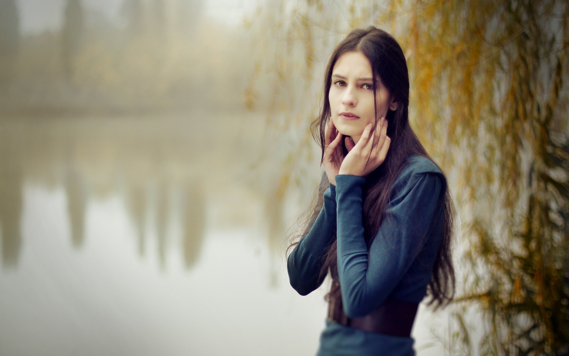 Chica triste con el pelo largo