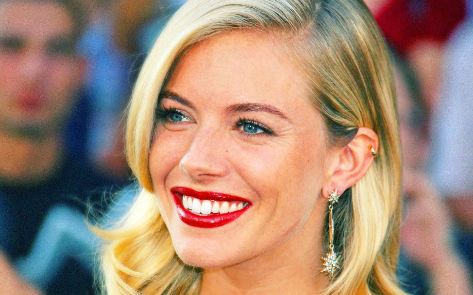 Retrato de una chica con lápiz labial rojo ojos azules