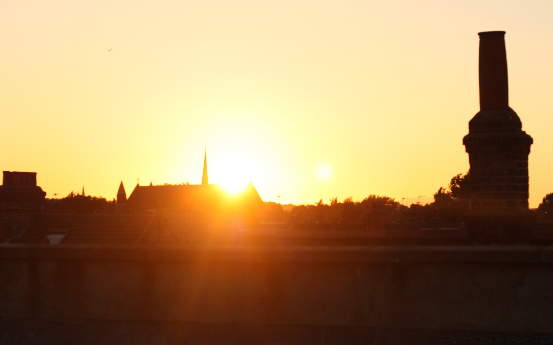 Puesta de sol sobre la ciudad iluminada por el sol